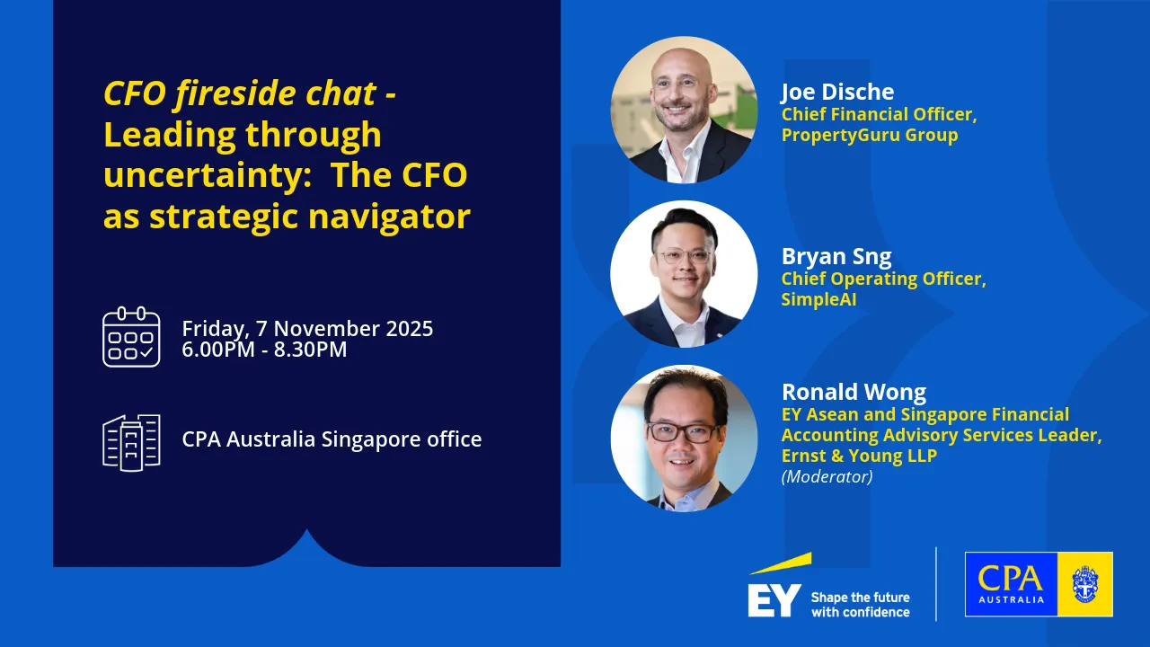 CPA Australia, in collaboration with EY, is pleased to invite you to an exclusive CFO Fireside Chat, featuring distinguished leaders from the professional and corporate finance world.