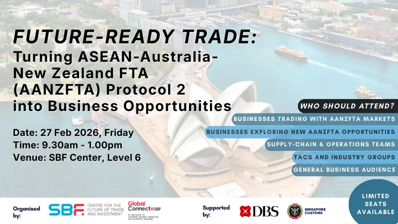 The upgraded AANZFTA Second Protocol introduces important changes to streamline trade across the ASEAN–Australia–New Zealand corridor. This session on 27 February 2026 will unpack key enhancements and transitional arrangements, with a practical focus on Rules of Origin—including how to correctly apply origin criteria and manage documentation such as back‑to‑back Form AANZ.