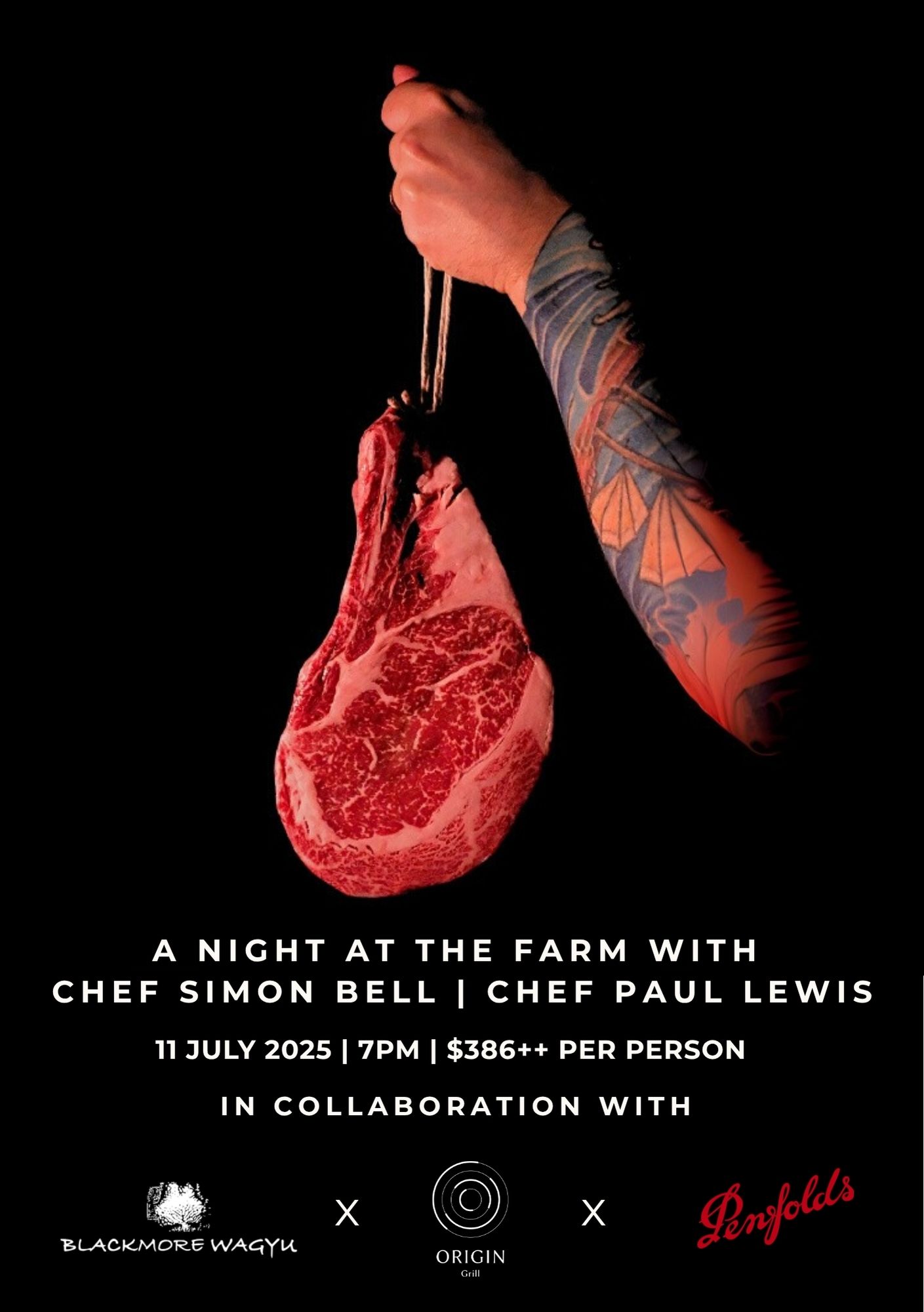 Delve into the rich stories behind each cut of premium Wagyu with celebrated farmer Ben, as expert butcher Sean offers rare insights into the craft of fine meat selection. Guided by the culinary talents of Chef Paul Lewis and Chef Simon Bell, enjoy a masterfully curated dining experience — each course paired perfectly with exceptional wines from Penfolds, enhancing every flavour with elegance and depth.